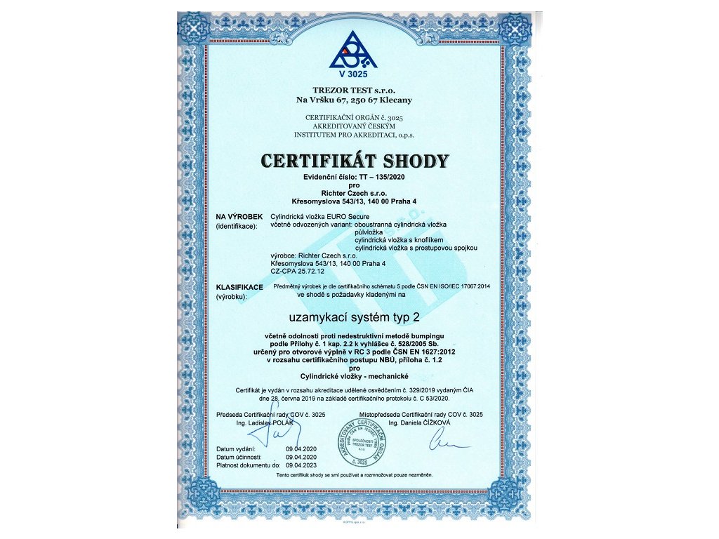 - Certifikováno v bezpečnostní třídě RC3 dle ČSN EN 1627:2012