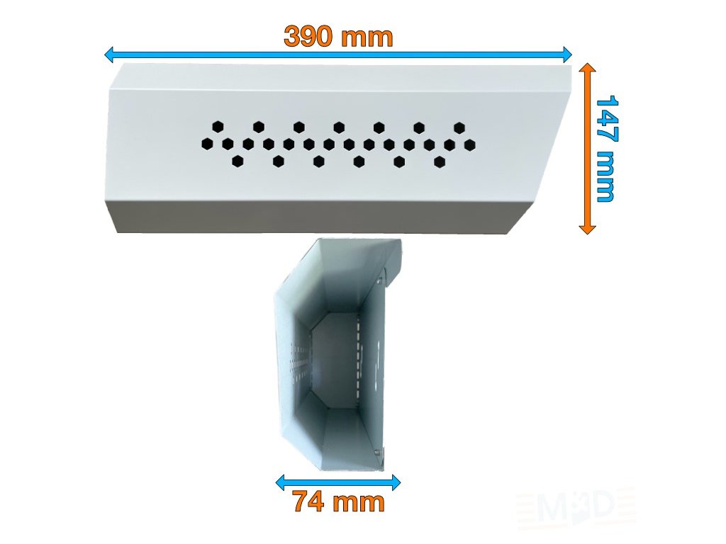 Celkový rozměr výrobku je 390 x 147 x 74 mm.