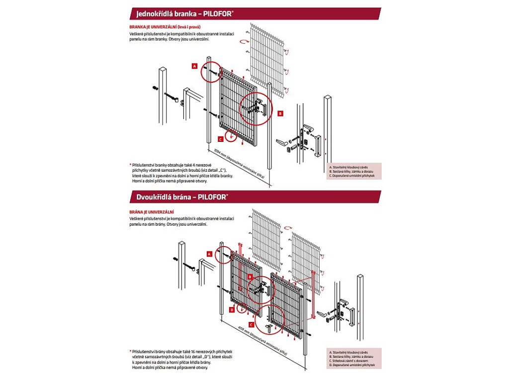 - Součástí branky jsou 2 sloupky vč. kloubových stavitelných závěsů.