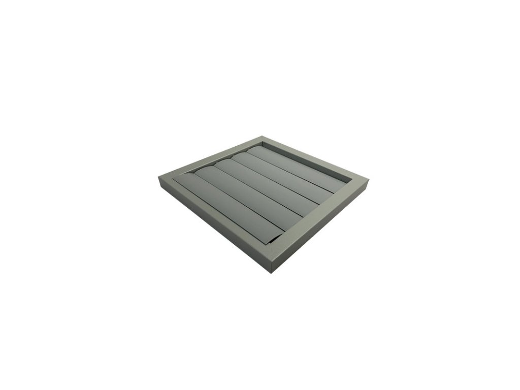 Mřížka je vyrobena z oceli s polymerovou úpravou v šedé barvě (RAL 9006) a lamely jsou z tvrzeného plastu. Díky své konstrukci se velice snadno čistí.