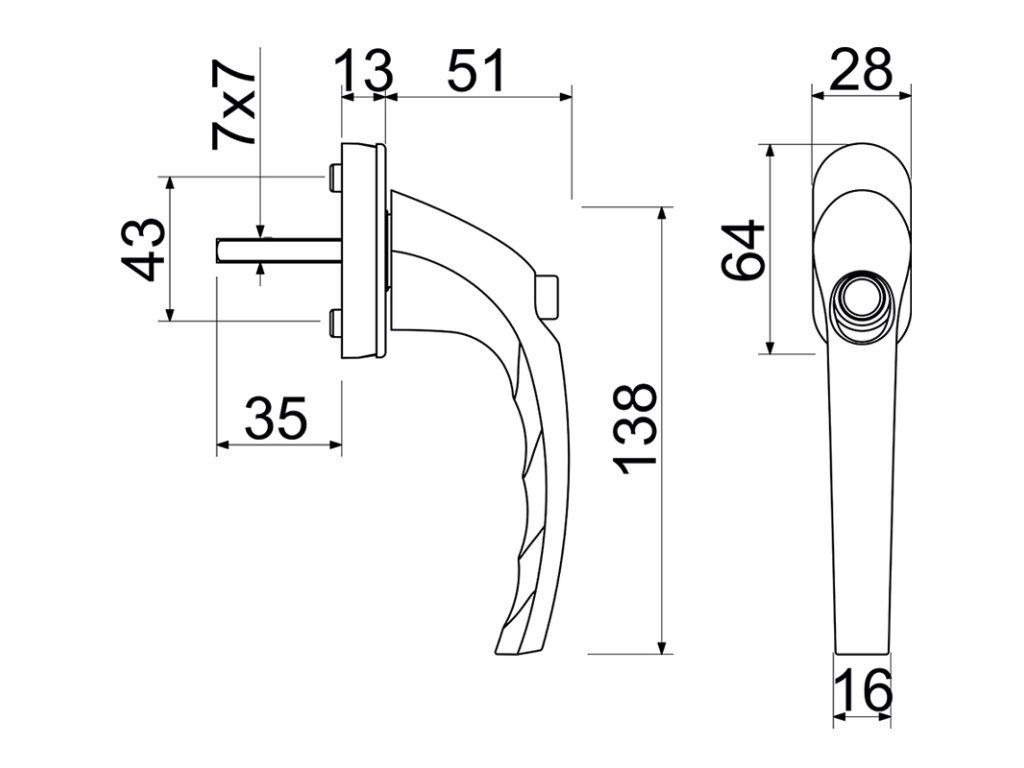 - Rozměr čtyřhranu 7 x 7/35 mm