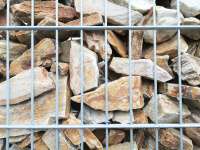 Úzký sypaný gabionový kamenný plot