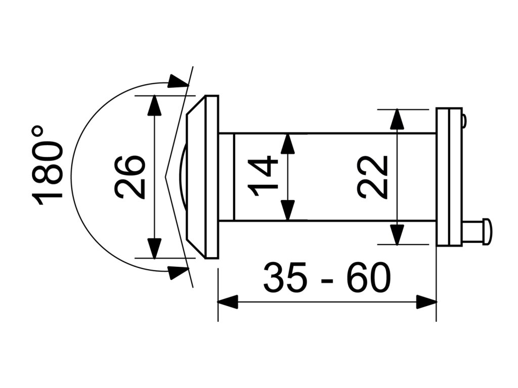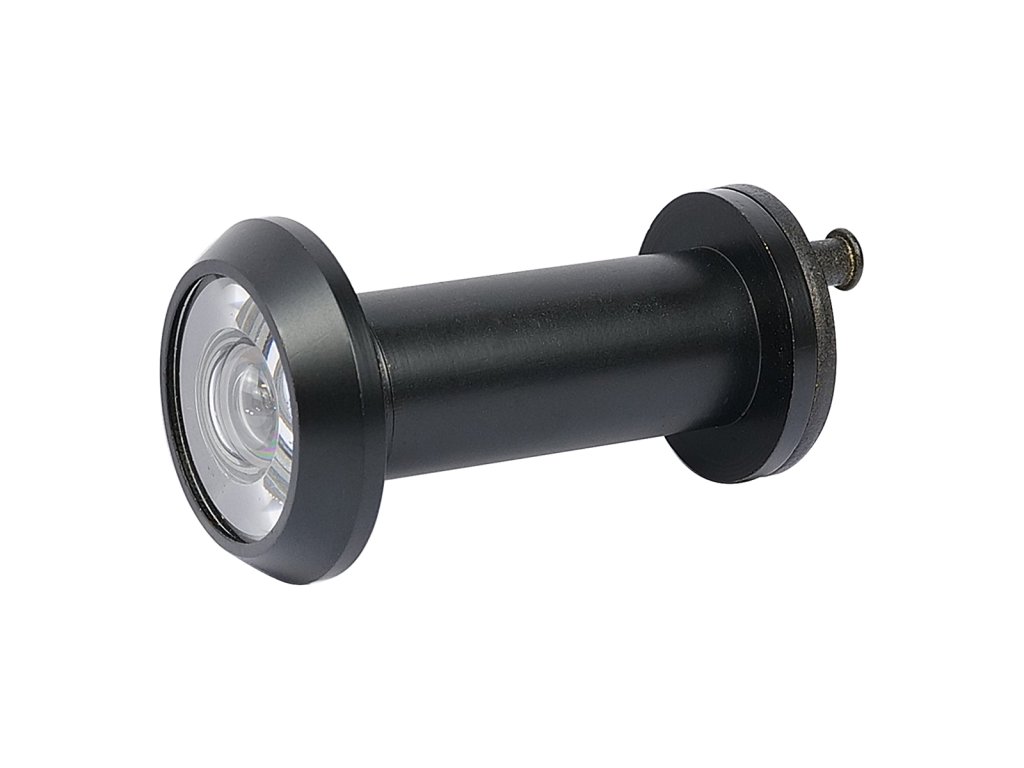 Mosazné protipožární dveřní kukátko se skleněnou čočkou, bez podložek. Pro tloušťku dveří: 35–60 mm - Barva: černá matná (CE)