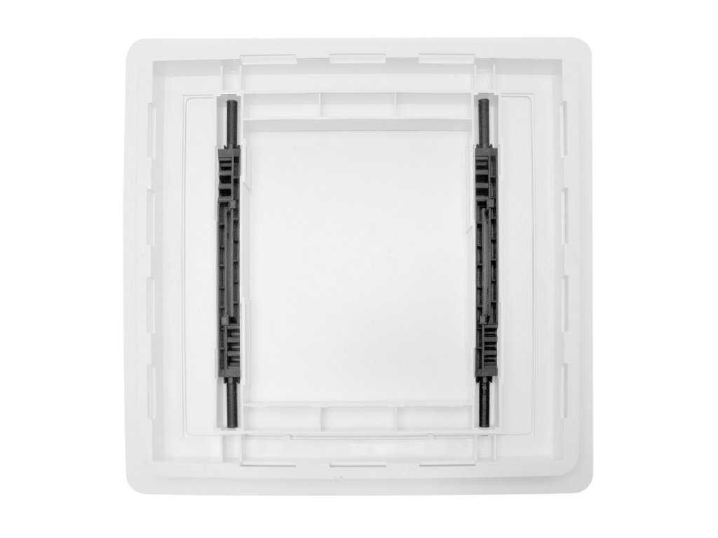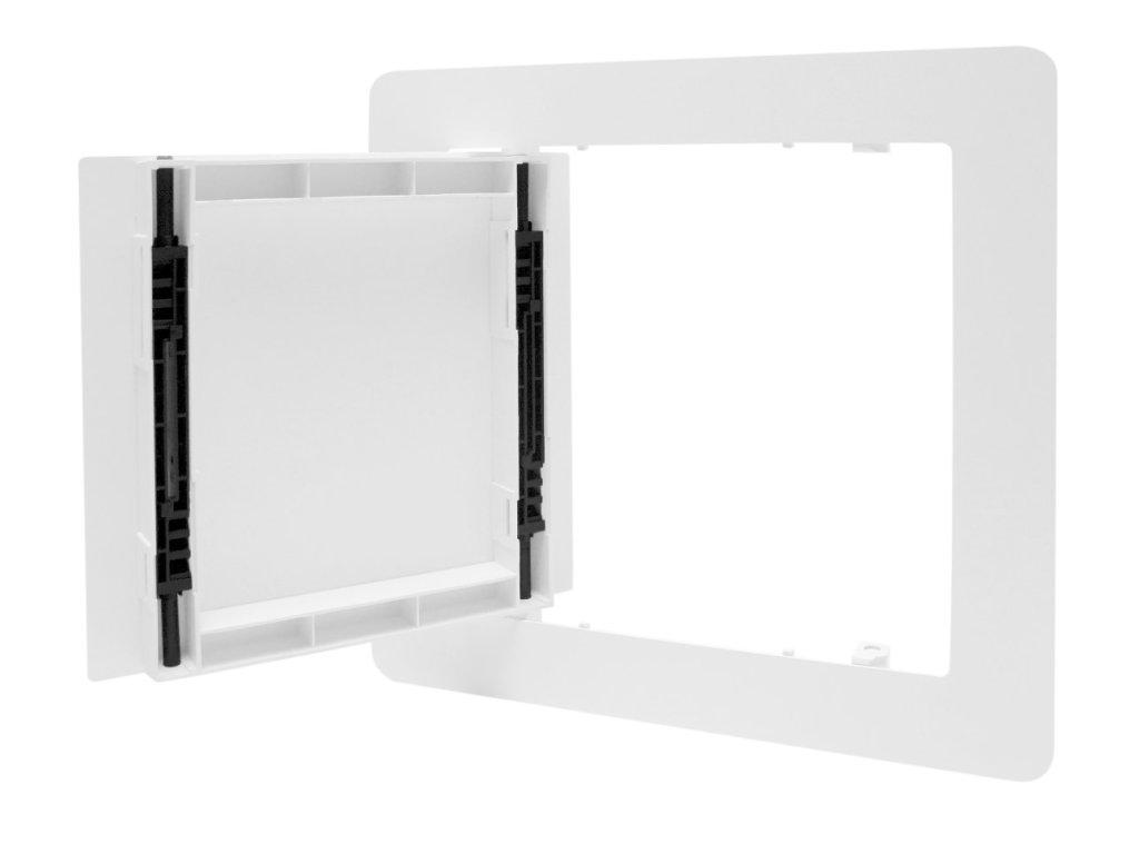 Instalace: Do rámečku profilu U s kotevními otvory natlačíme pojivo a následně zasadíme do připraveného otvoru. Dvířka se uzavírají lehkým zatlačením do rámečku, otevírají se pomocí jakékoli karty velikosti občanského průkazu, kterou zasunete do drážky na čelní straně dvířek. Dveřní křídlo lze zcela vyjmout z rámečku.