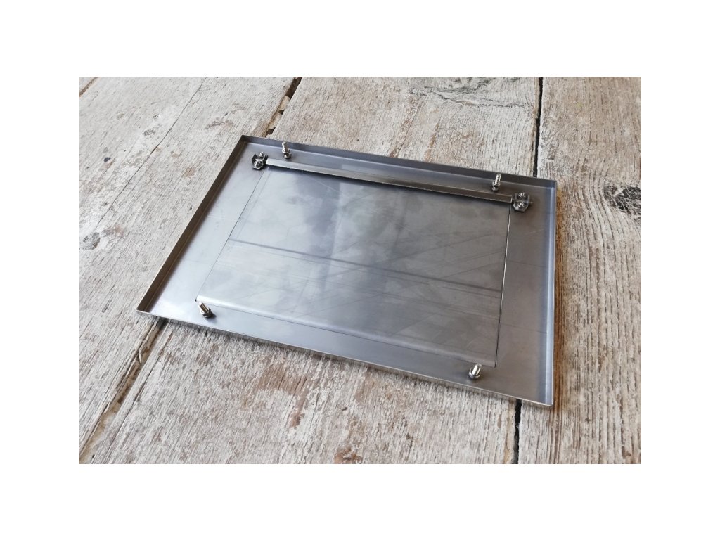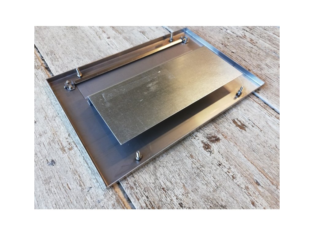Zadní štítek z nerezového plechu 1,3 mm pro šířku formátu A4.