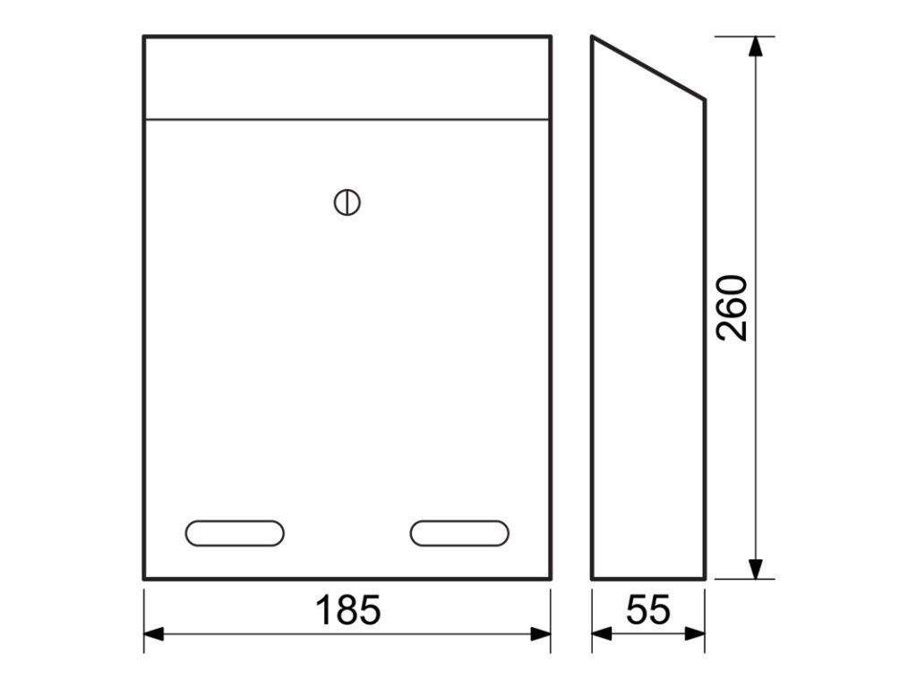 | Rozměr poštovní schránky Š/V/H: | 185 x 55 x 260 mm |