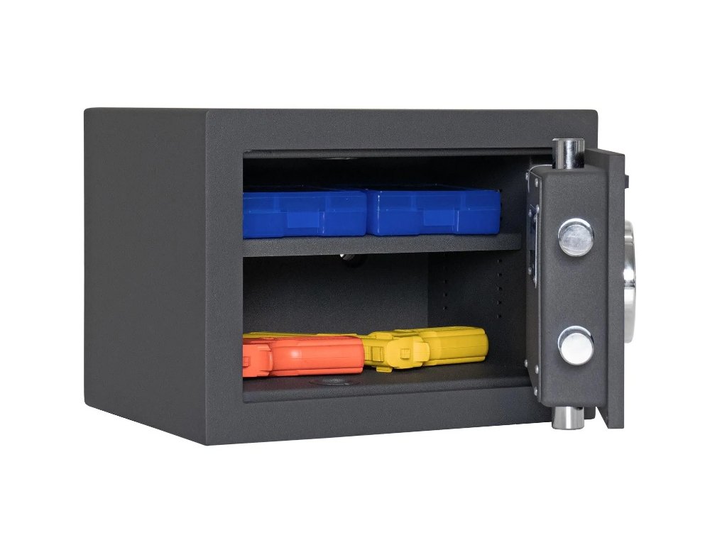 Certifikovaný trezor Rottner Toscana 26 s elektronickým zámkem disponuje certifikátem bezpečnostní třídy I. (ČSN EN 1143-1). Zároveň poskytuje dostatek prostoru pro krátké zbraně a vyhovuje požadavkům na úschovu zbraní a střeliva, které jsou stanoveny zákonem č.190 / 2003 Sb Elektronická zámek umožňuje naprogramovat 2 kódy (tzv. master a user kód) a zároveň zablokuje trezor na stanovený čas po 3. opakovaném nesprávném zadání kódu. Výborný společník pro hotely, kde je mnohdy potřebná flexibilita při zadávání kódu. Současně prostřednictvím master kódu se vám nikdy nestane, že váš host nebude moci otevřít trezor v případě zapomenutí svého kódu. Trezor disponuje vnějšími kontakty pro přiložení externí baterie. Balení obsahuje kotvící materiál.