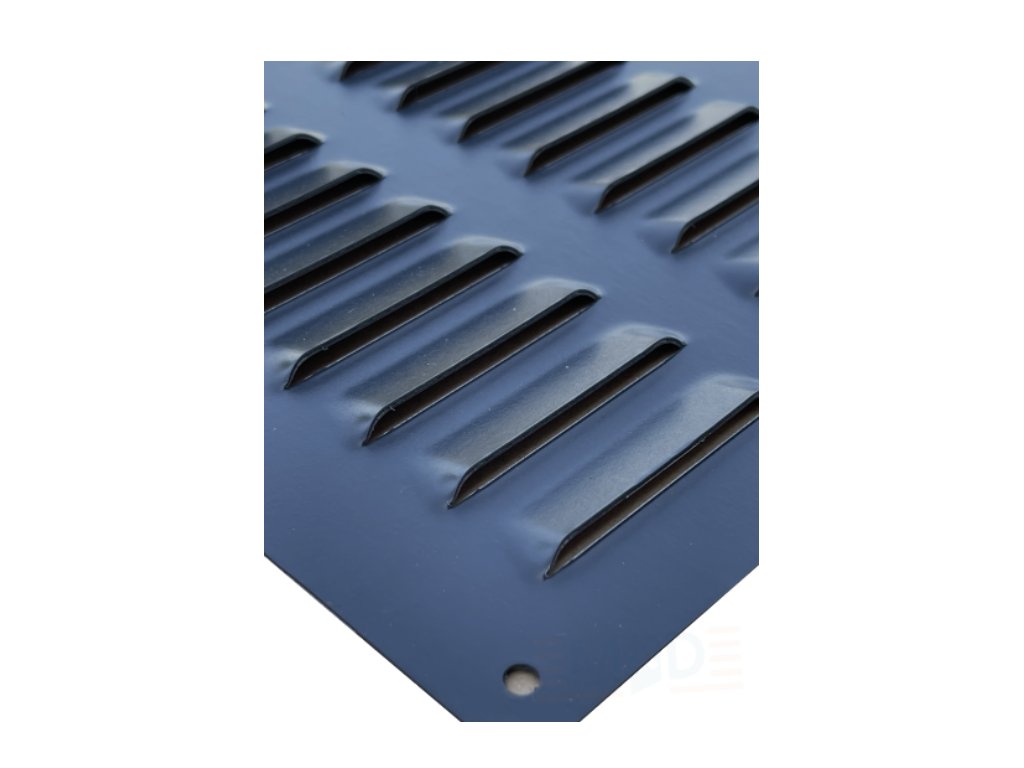 - Větrací mřížka z pozinkovaného plechu s vysekávanou protidešťovou žaluzií.