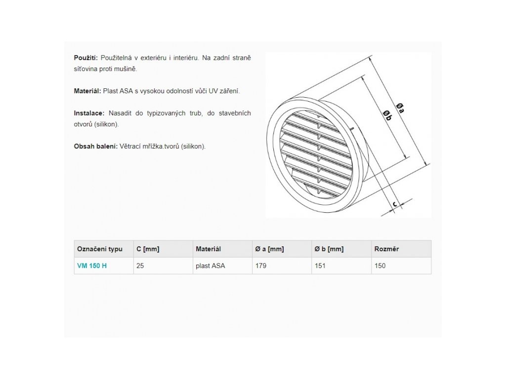 Obsah balení: Větrací mřížka.