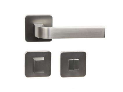 Zamakové kování na čtvercových rozetách s vratnou pružinou klik. Vysoká pevnost a odolnost materiálu proti opotřebení. Povrchová úprava nikl matný broušený (NIMAT), černá matná CEMAT, nikl bílý matný broušený NIBMAT. Precizní opracování všech prvků. Dveřní kování ideální pro použití v interiéru pro dosažení dokonalého vzhledu.